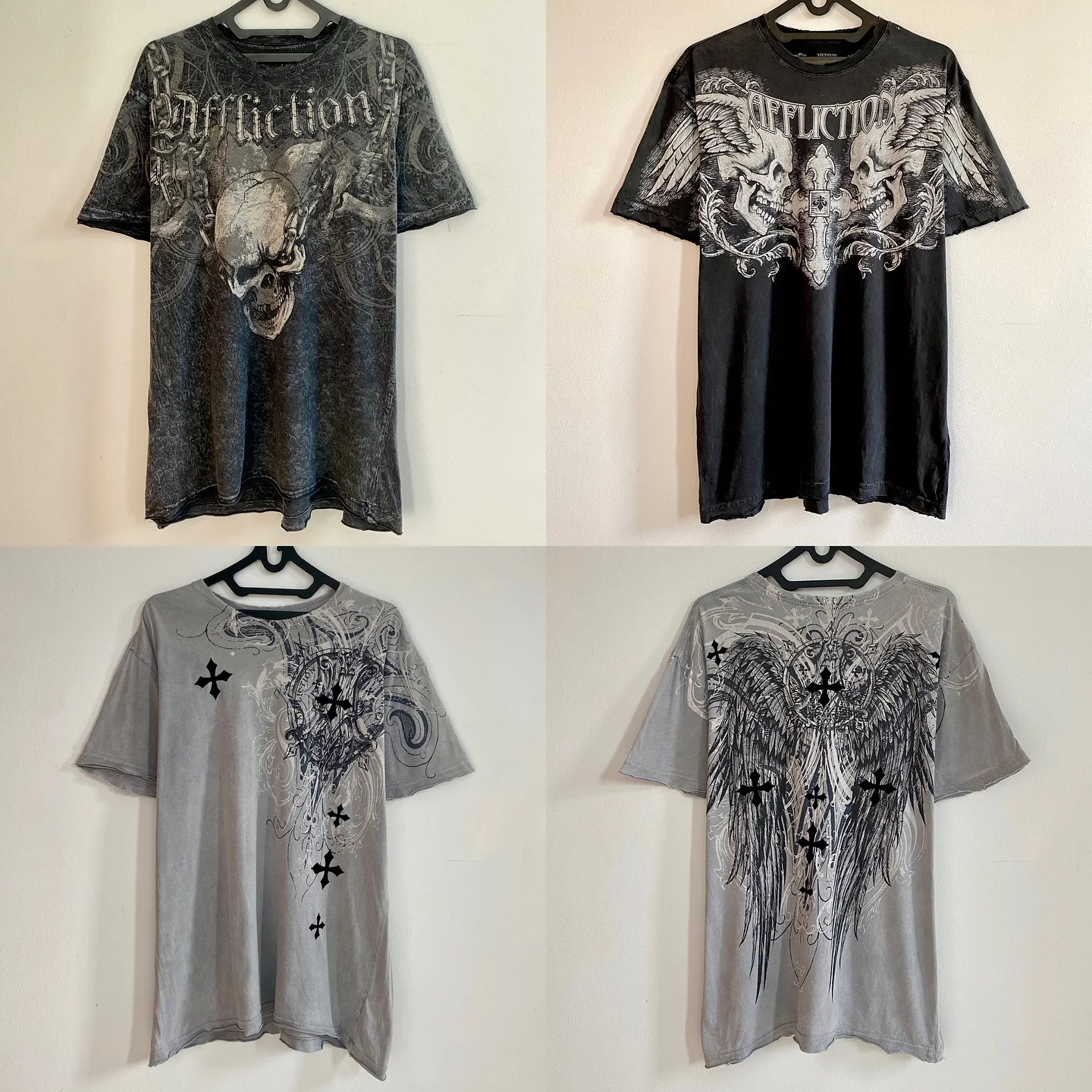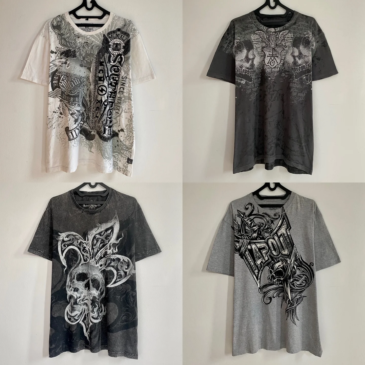 Y2k Vintage Gothic Skull Printed T-shirt Men Trendy Brand Punk Sports Undershirt Women Short Sleeve Fashion High Street T Shirt