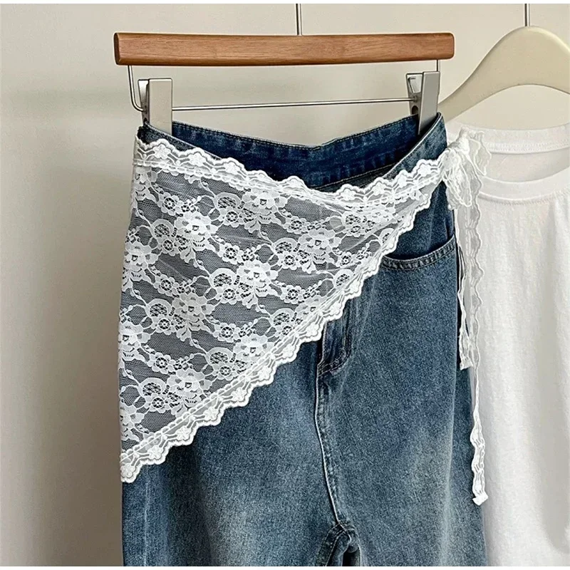 New Triangle Short Skirt Half Skirt Butt Curtain Skirt Lace Trim Small Apron Knitting Lace Stacked Ins Korean Women Headscarf