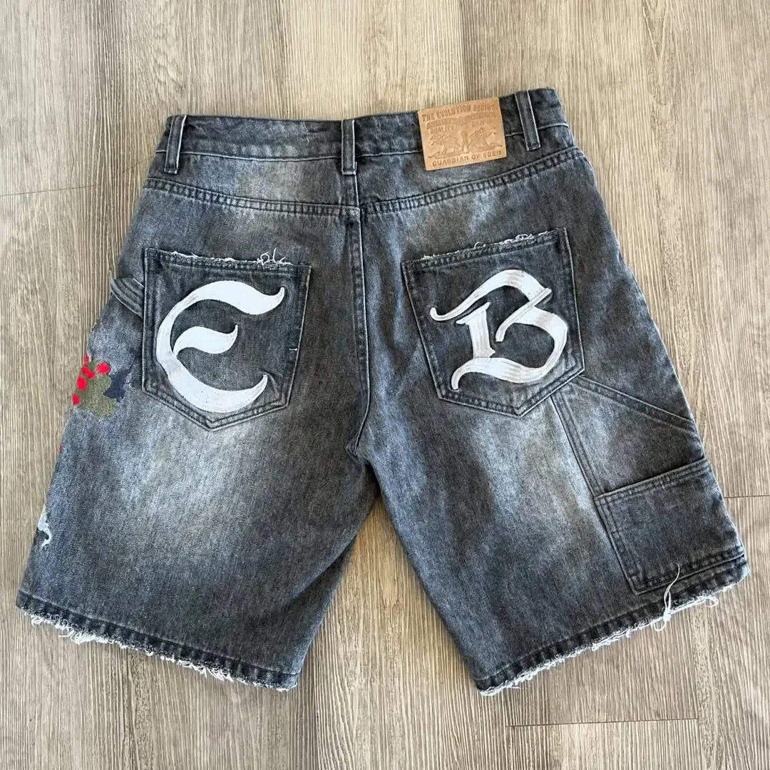 GETADME American Fashion Printed Denim Shorts Harajuku Hip-Hop High Street Denim Shorts Fashion Street Y2K Denim Shorts Men’s Clothing