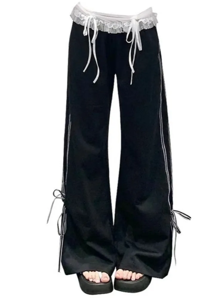GETADME Y2k Baggy Laces Patchwork Sweatpants Vintage Woman Korean Fashion Loose Sports Pants Harajuku Gyaru Casual Trousers