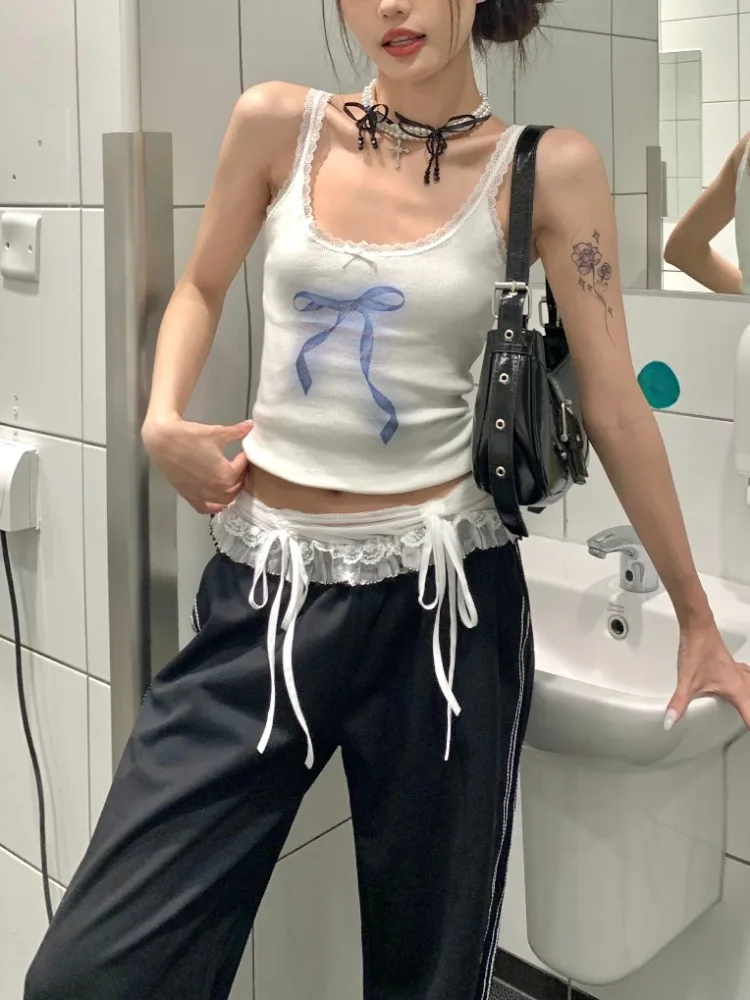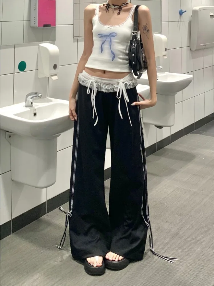 GETADME Y2k Baggy Laces Patchwork Sweatpants Vintage Woman Korean Fashion Loose Sports Pants Harajuku Gyaru Casual Trousers