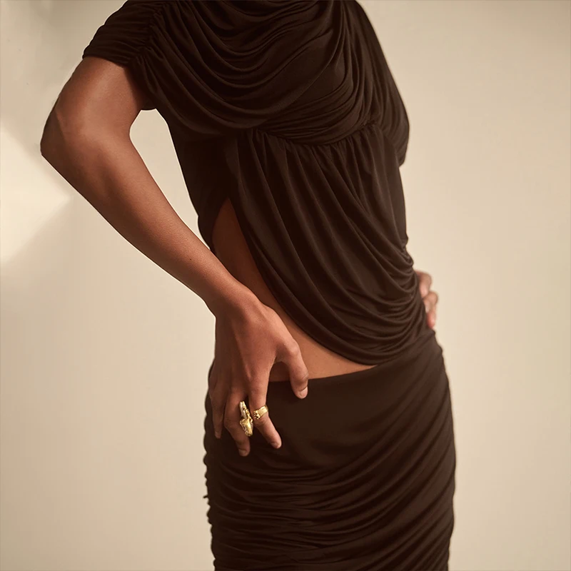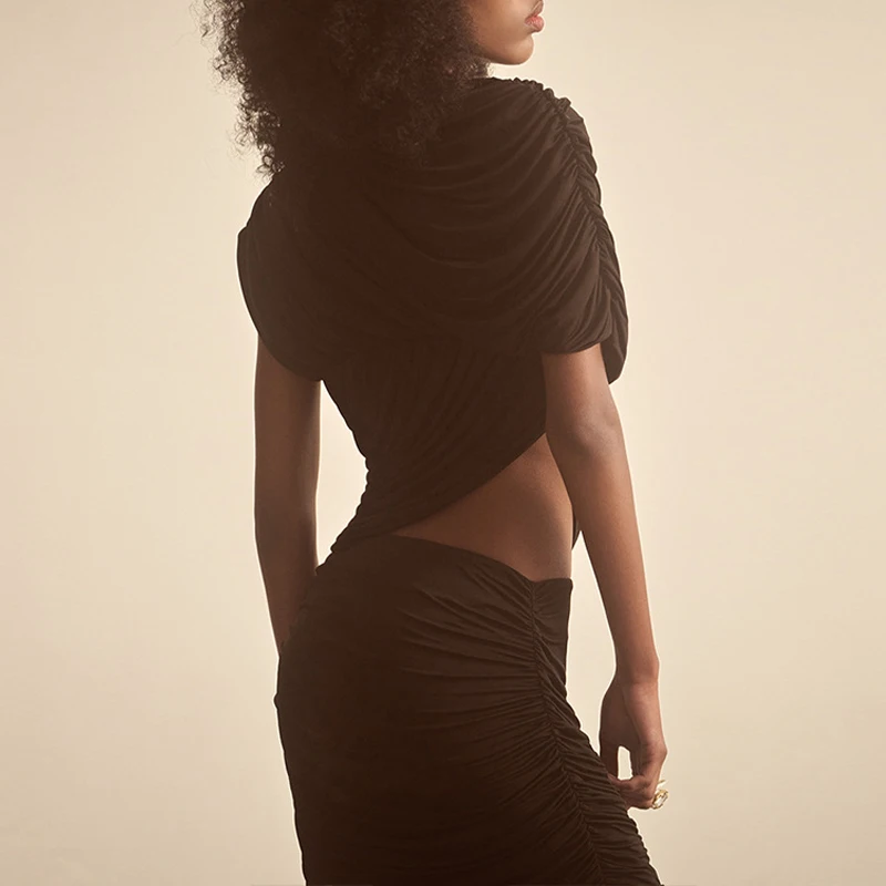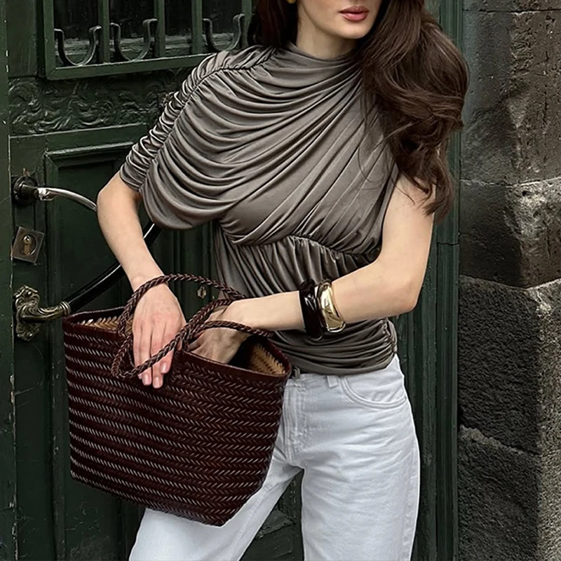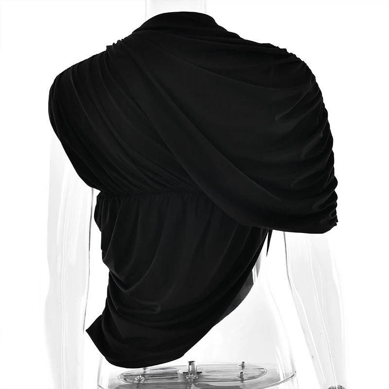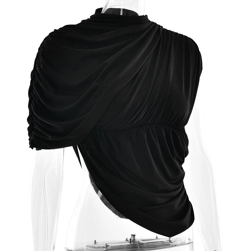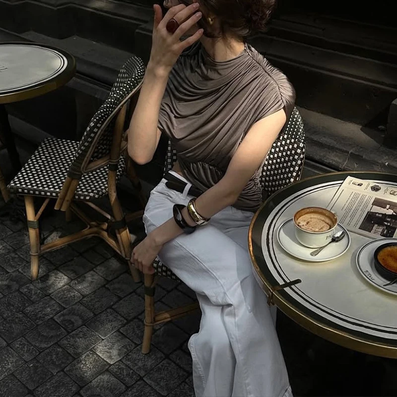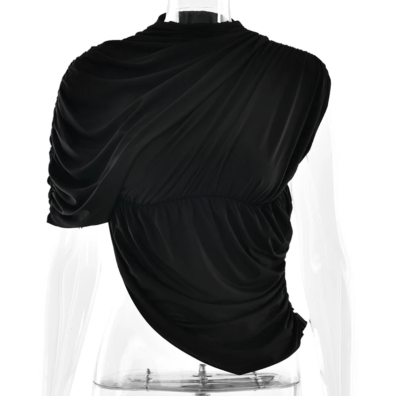GETADME Newly Chic Ruched Sleeveless Asymmetrial Solid O Neck Elegant Evening Party T shirt Pullovers Summer Clothing Tops