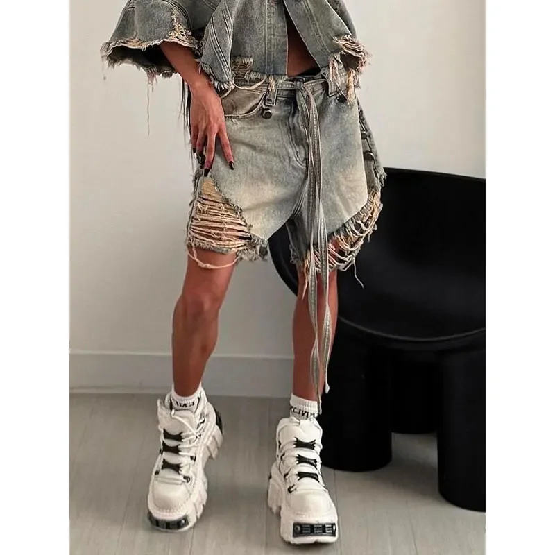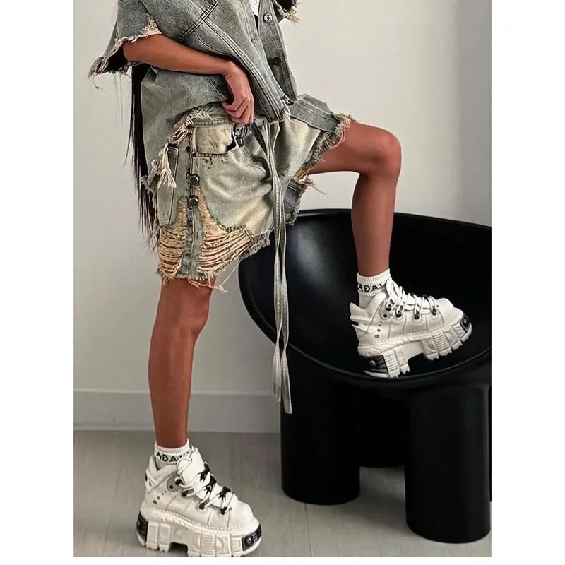 GETADME Women’s Vintage Ripped Harajuku Loose Fit Jeans Y2K Damage Emo Trashy Calf-Length Pants Kpop Baggy Washed Denim Trouser